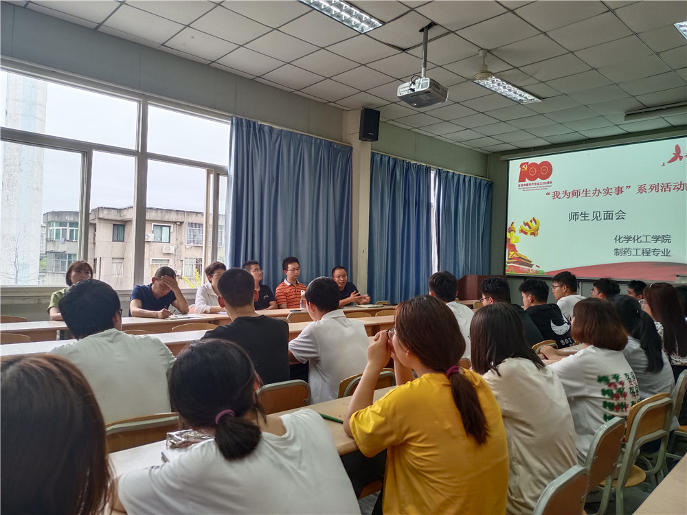 “师生见面会”上,黄九林老师首先介绍了制药工程专业的发展历史、专业定位、专业特色优势以及本专业往届学生就业考研情况。参会教师介绍了自己所带课程,科研方向和对新生的期望。师生互动环节,同学们踊跃提问,参会教师详细解答学生所提出的问题,细心为同学们解惑。黄婷副院长给同学们介绍了学院第二课堂的设置,学业导师和科研社团的情况,鼓励同学们积极参与学科竞赛和各类科研项目。柳林院长鼓励同学们在学习之余通过各社团活动增强个人的情感道德价值观,做一个全面发展的人。最后,王永东书记对本次活动做了总结,期望同学们能脚踏实地,善于思考学习,努力充实四年大学生活。