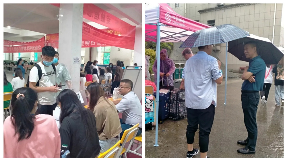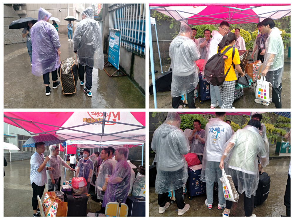 连绵不断的雨为迎新工作增加了难度,却丝毫不影响大家工作的热情,忙碌的迎新现场秩序井然。从接待点到报到处再到宿舍楼,他们始终热情、体贴的服务于每一位新生,让化工学子感受到大学温馨的集体生活氛围。志愿者们穿着雨衣穿梭在安大校园中,在雨中如一道道美丽的风景。