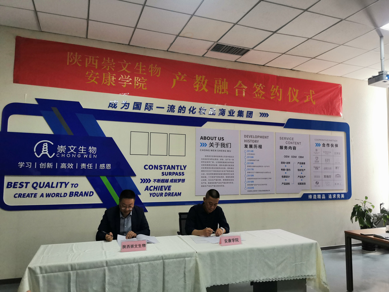 为提升我院化妆品技术与工程专业办学水平,深入了解西安及其周边化妆品企业的用人需求和就业市场。5月19日,太阳成集团tyc7111cc王永东带队一行6人前往陕西崇文生物科技有限公司进行参观调研,围绕妆品行业人才需求、校企科研项目合作、学生综合素质能力培养等方面开展交流研讨,并现场签订了产教融合实习实践基地协议。