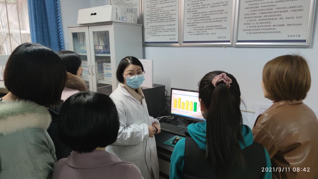 化妆品技术工程系的寇莹,张芳两位老师采用德国CK多探头皮肤测试仪MPA10,为全校的女教工和女学生免费检测了皮肤水分、油脂、红色素、黑色素等,并对她们皮肤保养提供宝贵的建议。