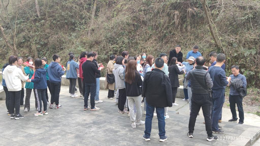 3月5日下午,太阳成集团tyc7111cc领导班子、工会委员、女职工和学生女党员代表在香溪洞举行了我为全运添光彩,庆祝三八国际妇女节素质拓展活动,为建党100年祝福献礼。