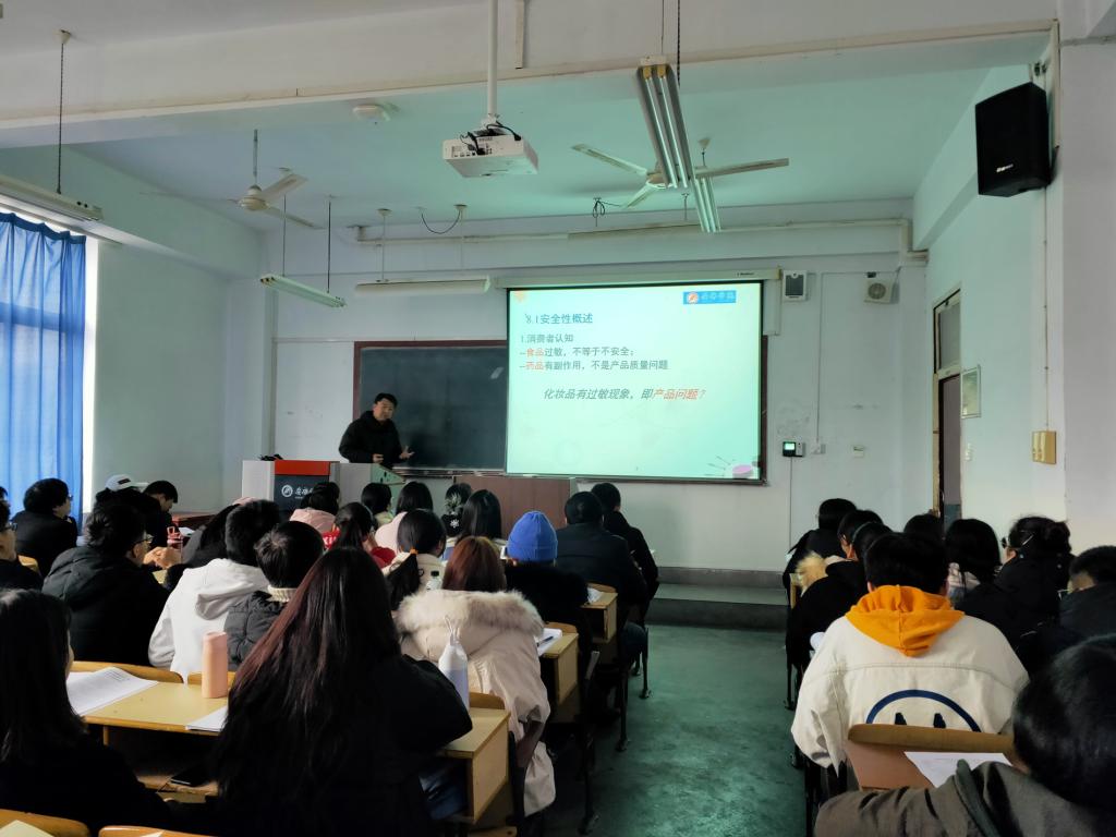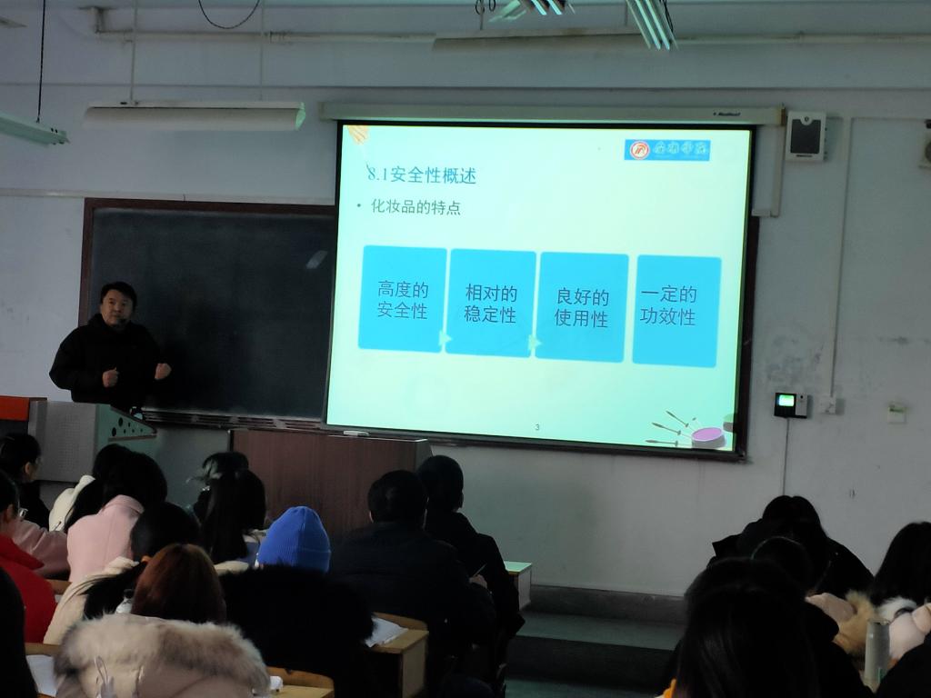本次观摩活动中,《化妆品工艺学》主讲教师纪桢副教授讲授内容为《化妆品安全保证体系设计》。纪老师首先对化妆品的安全性和功效性进行简单介绍,然后通过与食品、药品进行对比说明消费者对于化妆品安全性的认知,并从皮肤的特点、皮肤屏障的重建、产品的使用方式、行业标准以及使用方法等方面进行介绍使学生对化妆品安全性这一概念有初步认识。