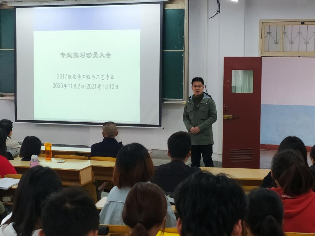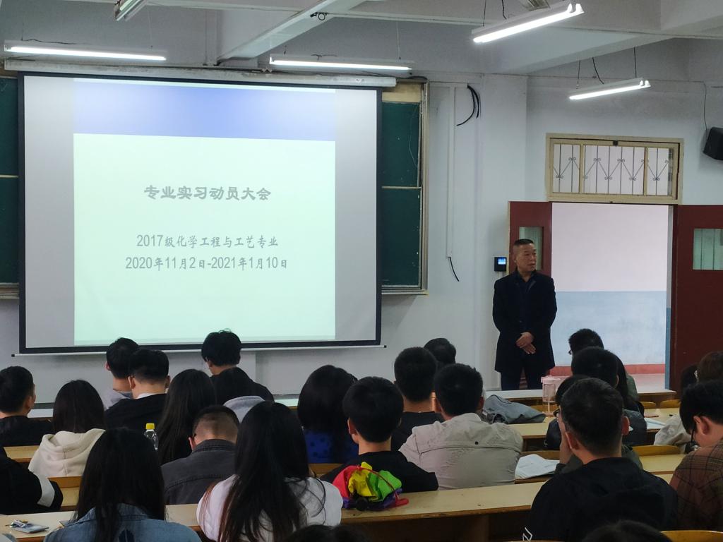 10月27日下午,我院化工系2020年度专业实习动员大会在1510教室举行。学院院长柳林,书记王永东,副院长袁光辉出席会议,学院学生管理、实习指导老师及2017级化学工程与工艺专业75名实习生参加会议。会议由我院化工系主任纪桢主持。
