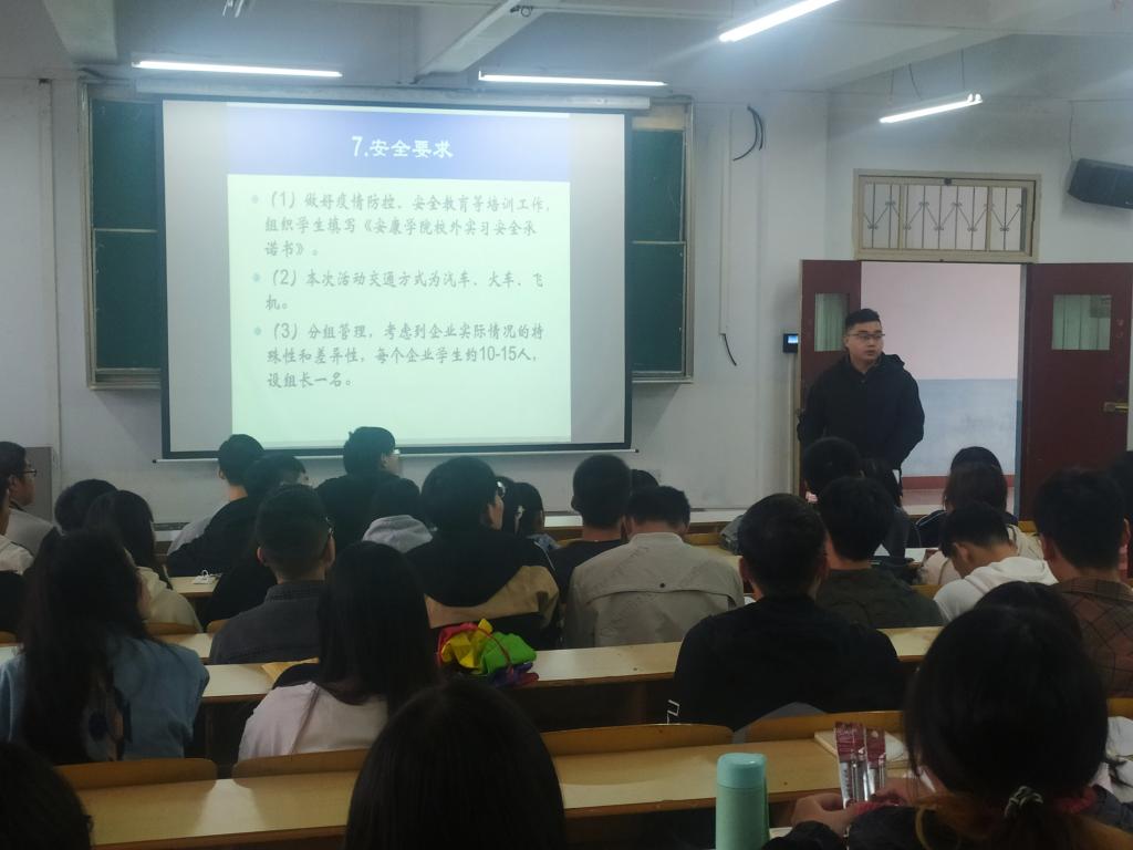 王永东书记首先针对实习意义,疫情条件下的学生管理等方面进行了讲解,嘱咐同学们高度重视专业实习,勤学慎思,遵守实习纪律,注意自身保护,开阔视野,为就业打好基础。柳林院长鼓励大家认真完成该教学环节,指出本次实习是检验自身学识,增加阅历,促进就业的重要教学环节,强调了疫情条件的自身保护和路途安全等问题。袁光辉副院长介绍了本次专业实习学院在学生教学管理及安全管理的各种举措,包括购买人身意外保险等,鼓励学生利用好“实习+就业”教学模式,开阔视野、增长才干,他希望同学们珍惜这次专业实习的机会。