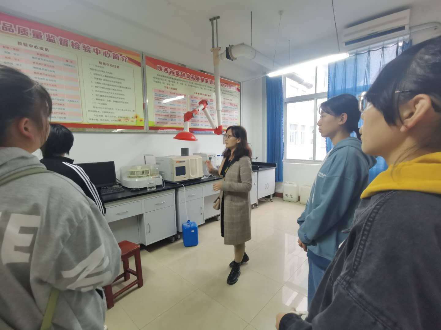 纪桢老师和寇莹老师首先带领同学们参观了我院实验实训教学中心,包括化工综合实训室、大学生创新创业实验室、无机化学与分析化学实验室、仪器分析实验室、物理化学实验室、有机实验室、化工虚拟仿真实验室以及陕西省富硒食品质量监督检验中心等专业实验室和科研平台,给同学们讲解了专业特点、培养目标和各专业实验室承担的主要教学科研任务,鼓励学生积极参与各类竞赛及科研活动,力争在校期间获得更多成果。