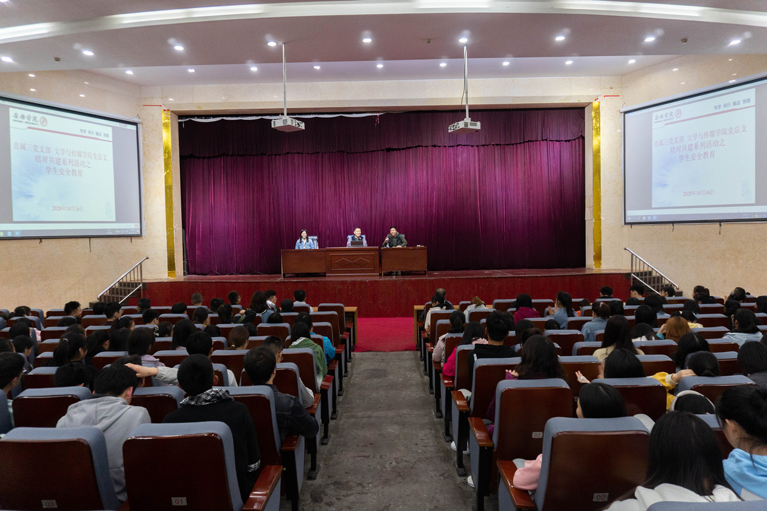 2020年10月16日晚上7点,太阳成集团tyc7111cc、文学与传媒学院联合保卫处为2020级新生开展入学安全教育专题讲座。保卫处王开忠处长主要围绕大学生中常见的安全问题及其预防措施,结合我校发生案例给同学们进行了生动的讲解。
