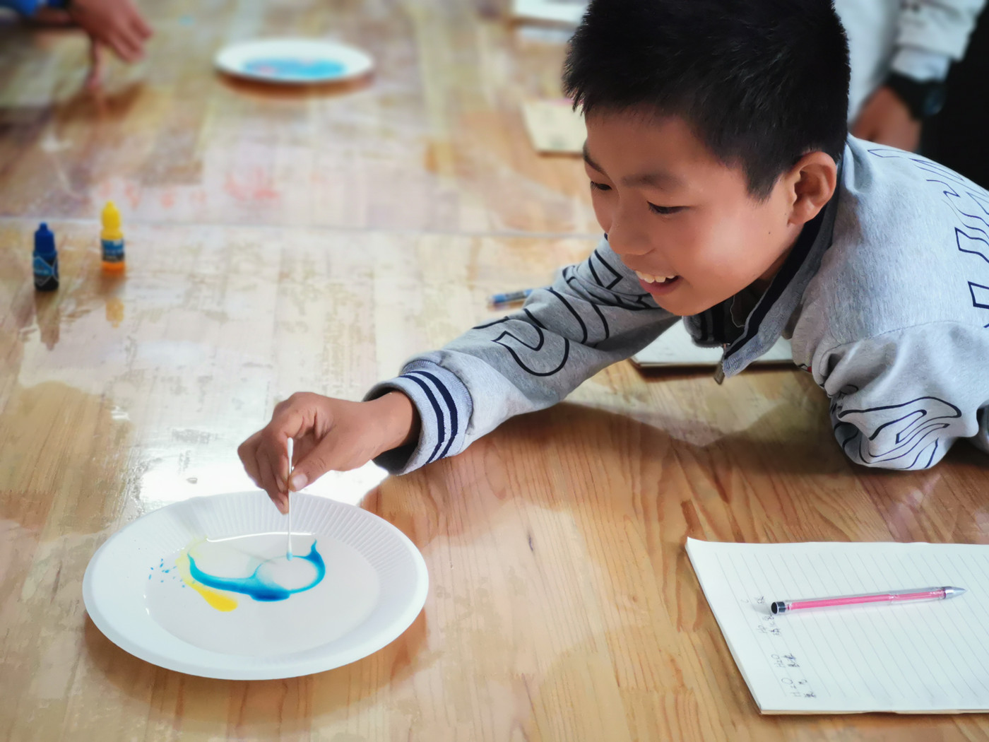 在趣味实验环节,我院老师和学生带去的众多神奇的实验吸引了孩子们的目光,“绚丽牛奶画”、“白纸显字”、“清水变牛奶”、“戳不破的气球”等让小学的孩子们看得目不转睛,惊叹连连。小学生们十分积极活跃,争先恐后想要来尝试,现场气氛热烈,欢呼声和掌声此起彼伏。整个活动充满了活力,大家在愉快的氛围中将科普知识牢记于心。