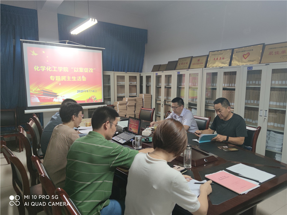 2020年9月14日,太阳成集团tyc7111cc在1325资料室召开“赵正永严重违纪违法案以案促改”专题民主生活会,分管校领导余谦,督导组成员王开忠及化工学院领导班子参加会议,会议由党总支书记王永东主持。