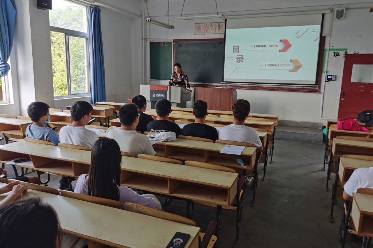国药控股陕西有限公司人力资源部田经理,从公司经营理念、经营范围、员工晋升空间等多方面进行了详细的介绍。同学们积极交流沟通,主动问询求职信息,现场气氛活跃。