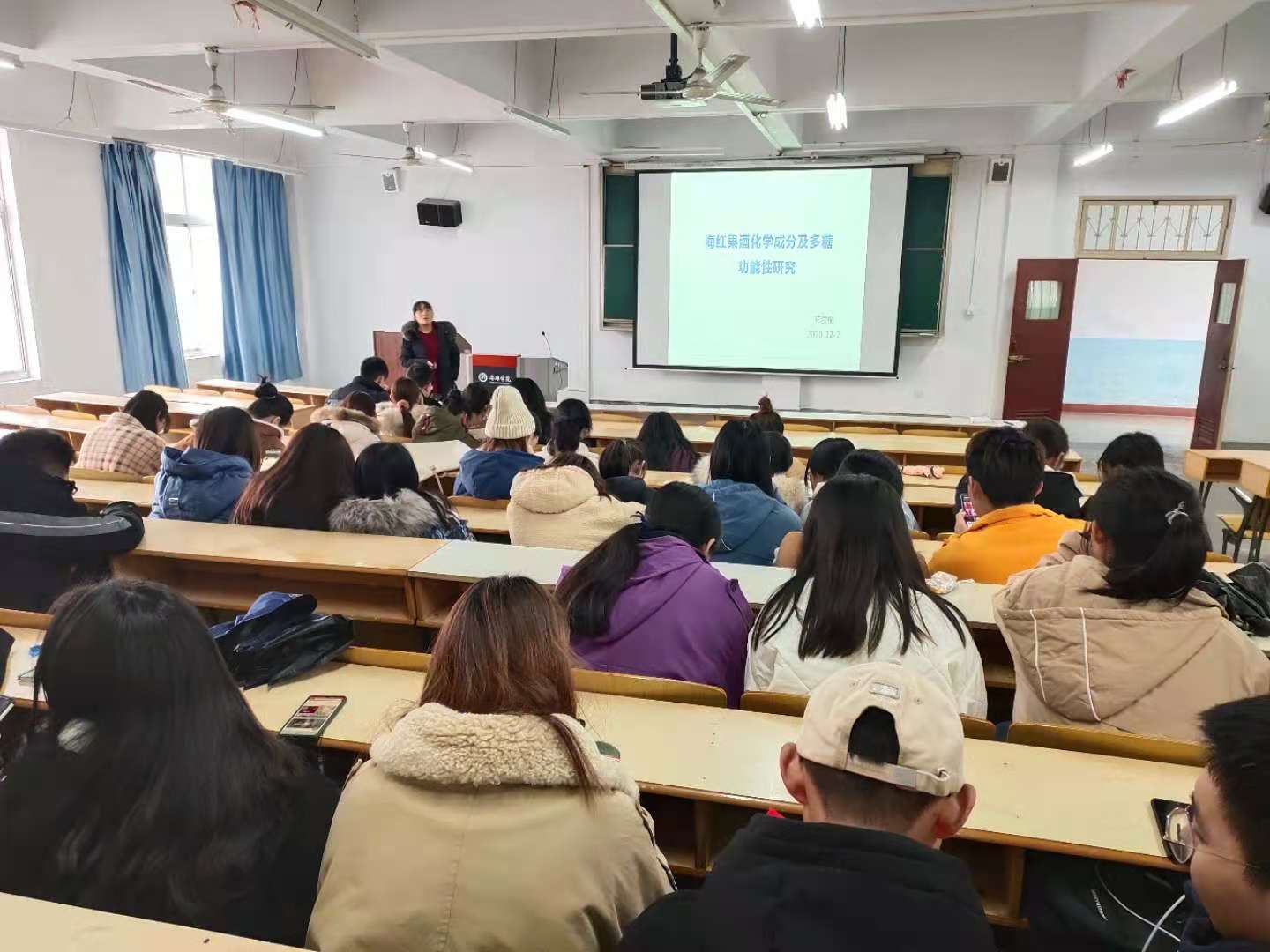12月2日下午,我院花俊丽博士于江南校区1号教学楼1510教室,为制药工程、化学工程与工艺等专业师生百余人做了一场以“海红果酒化学成分及多糖功能性研究”为题的学术讲座。