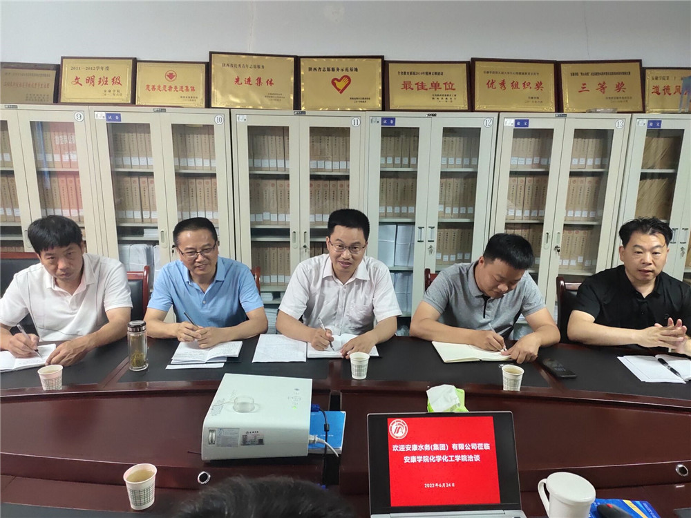 6月24日下午,安康水务(集团)有限公司一行8人来我院洽谈校企合作事宜。柳林院长、黄婷副院长、应用化学系教师参与此次洽谈。