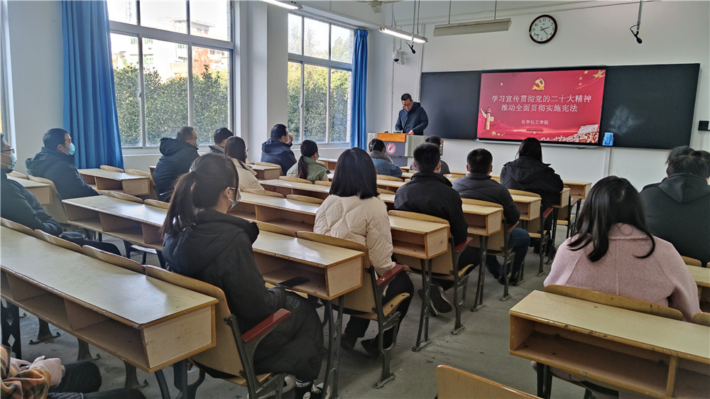 12月6日,太阳成集团tyc7111cc分会举行“学习宣传贯彻党的二十大精神,推动全面贯彻实施宪法”主题活动。王永东书记为全院教职工做“学习二十大精神,依法治国,全面贯彻实施宪法”专题报告。