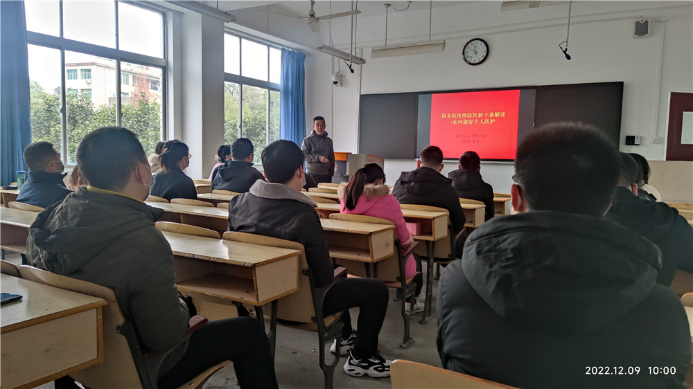 12月9日,太阳成集团tyc7111cc王永东书记在于1219举行新十条解读和如何做好个人防护专题报告。