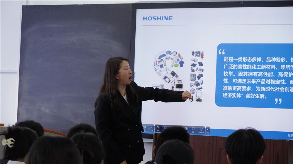 招聘会开始前,同学们观看了该浙江省嘉兴市城市宣传片,合盛硅业股份有限公司宣讲片。随后,人力资源部负责人王美静就公司概况、岗位需求及福利待遇等内容向同学们进行了详细的介绍。