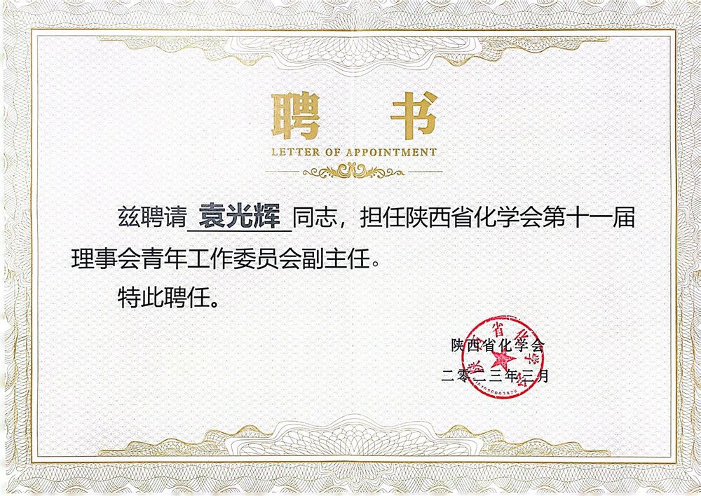 会议对理事会分支机构进行了换届,我院袁光辉教授当选为陕西省化学会第十一届理事会青年工作委员会副主任。