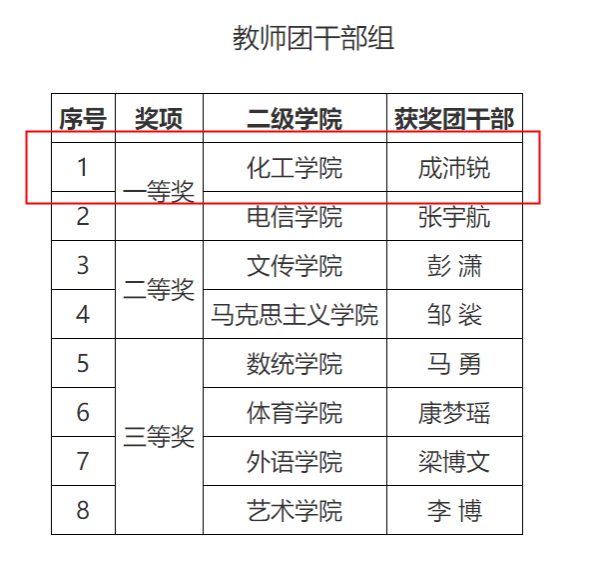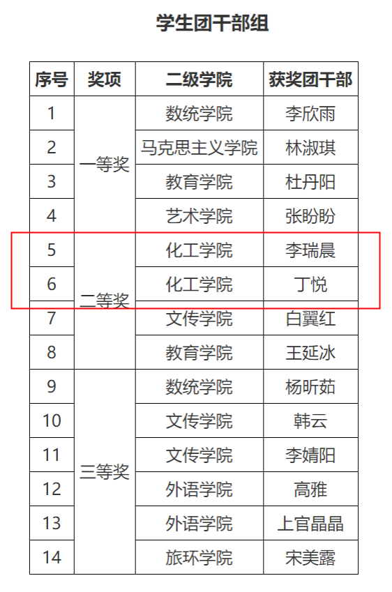 我院教师团干部成沛锐荣获教师团干部组一等奖;学生团干部李瑞晨、丁悦荣获学生团干部组二等奖。我院团干部将以此次比赛为契机,以赛代练、以赛代训、以赛促学、以赛促建,全面、系统、深入学习习近平新时代中国特色社会主义思想和党的二十大精神,为我院团学工作水平再上新台阶贡献力量!