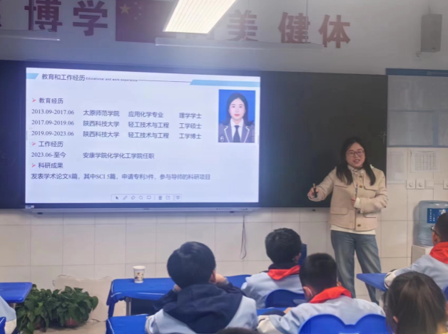 11月20日,我院“化学之光”科普团老师赵姣姣博士前往汉滨初中(大桥路校区)开展科普宣传活动。