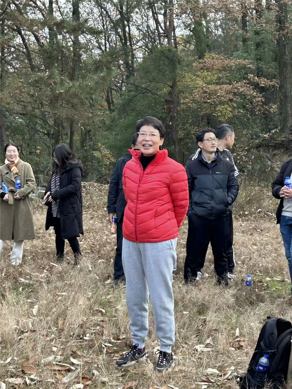 12月1日下午2点,全体学生在老师们的带领下从图书馆门前集合出发,一路上高举旗帜有序前进,旅途中大家欢声笑语,唱歌拍照,欣赏着香溪步道沿途的美景。历经一个多小时的徒步爬山后,全体师生到达了目的地。