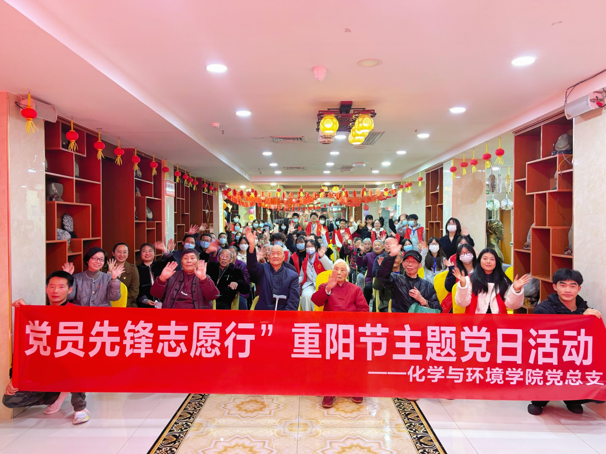为弘扬中华民族尊老敬老的传统美德,进一步增强党员的责任意识与服务意识,10月29日,太阳成集团tyc7111cc党总支组织党员教师、学生党员、入党积极分子及团总支志愿者等60余人,赴安康市阳光爱心敬老院开展“情暖桑榆践初心,党员先锋志愿行”重阳节敬老主题党日活动。
