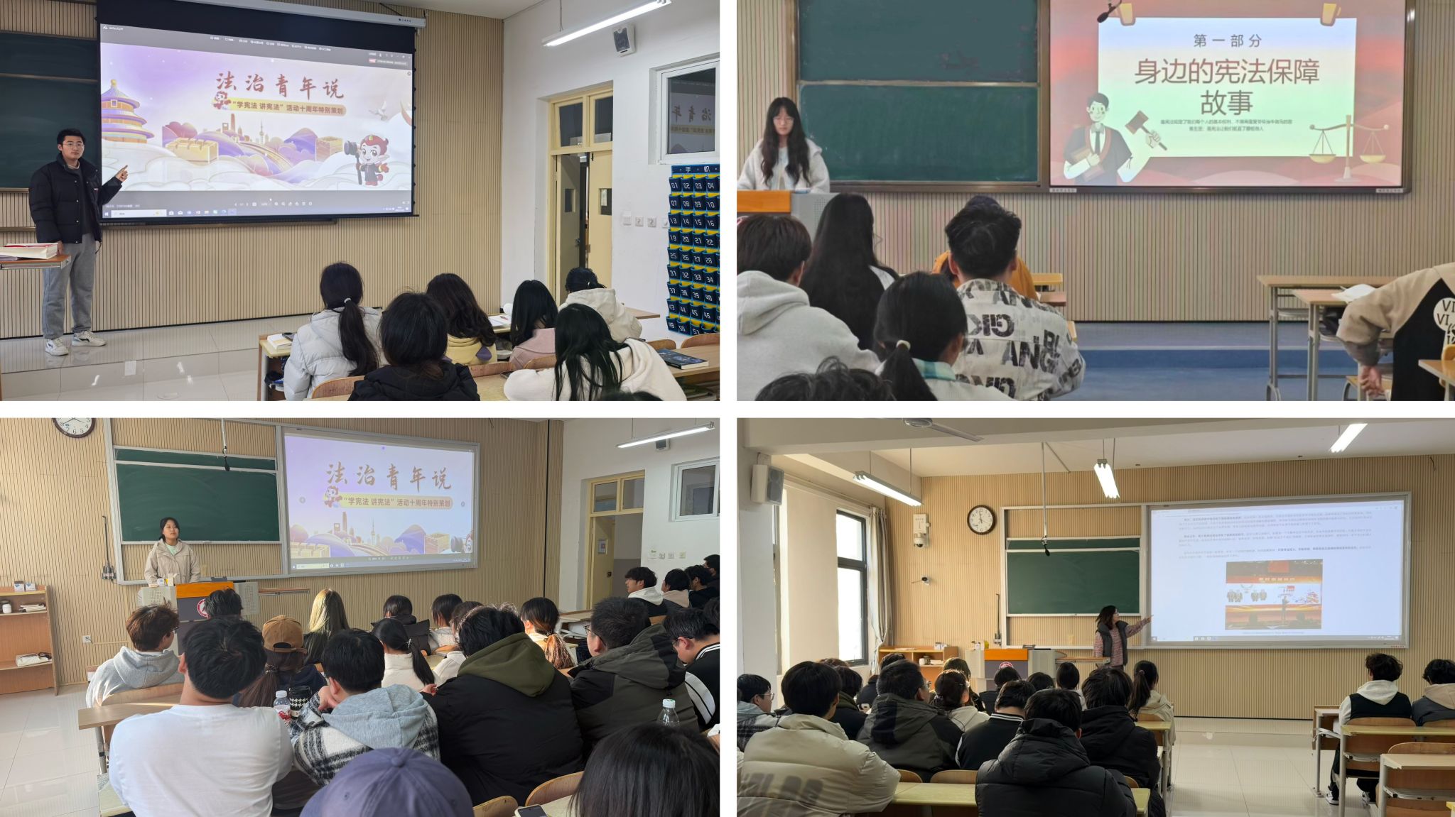 为深入学习贯彻习近平法治思想,提升青年学生的法治素养,引导其成为社会主义法治的自觉遵守者和坚定捍卫者,根据学校党委宣传部《关于组织学生参加第十届全国学生“学宪法 讲宪法”活动的通知》相关要求,11月18日-28日,太阳成集团tyc7111cc精心组织各班级,成功开展了“法治青年说”系列主题教育活动。