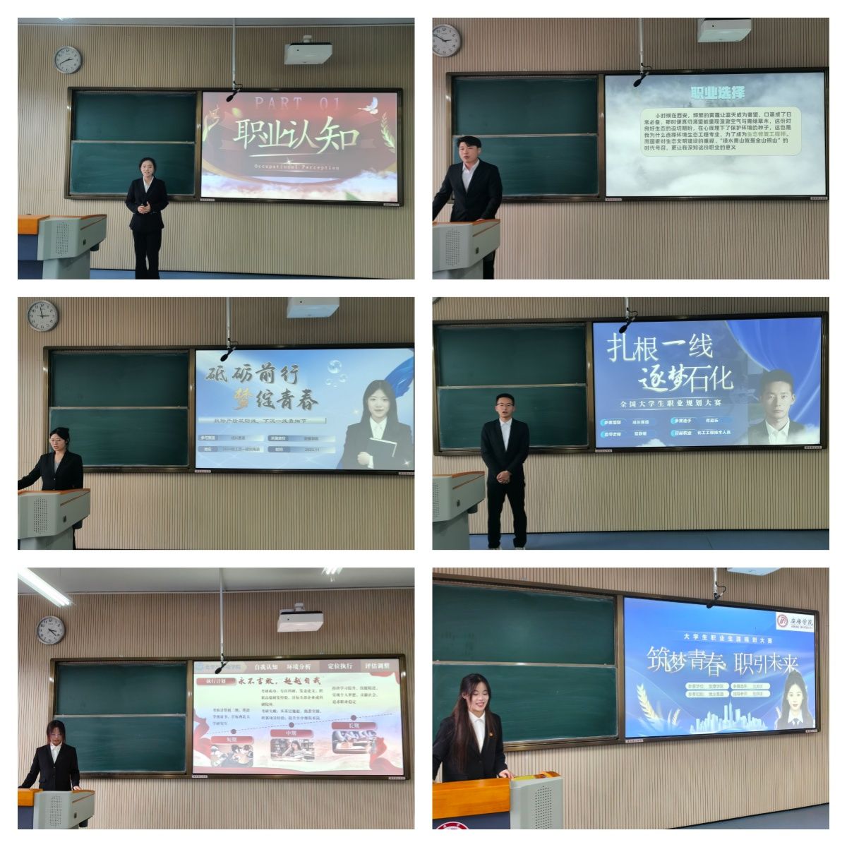 本次大赛严格对标校赛要求,设置成长与就业两个赛道,经各班辅导员遴选推荐,共有12名学生入围院级决赛,5名选手跻身成长赛道,7名选手挺进就业赛道。