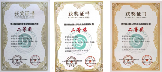 我院师生自接到通知以来,积极组织学生参赛。在化妆品技术与工程专业教师郑智博、张芳、赵姣姣、牛晔、金成召、李培侠的分别指导下,组织该专业22、23、24级学生共11支队伍参加了此次比赛,其中有7支队伍获得优秀奖,1支队伍获得三等奖,3支队伍晋级决赛。参赛队伍数和晋级决赛队伍数都比去年有显著增加。在决赛中,我院学子积极备赛,充分打磨作品,从容应答评委提问,展现的良好的专业素质和赛场风貌。最终,由郑智博老师指导,孔得婳、张淑佳、牛佳、雷熠乐完成的作品“蓝纳尔-秦巴蓝盾优素乳”获得“产品创意组”二等奖,由李培侠老师指导,张亚娥、蒋淑雯、陈紫圆、李怡欣、杨宇延完成的作品“空谷幽莲”和由赵姣姣老师指导,陈盈洁、邓莹、侯瑾、罗紫娟、贾梦洁完成的作品“植漾源-水乳礼盒设计”获得“包装宣传组”二等奖。