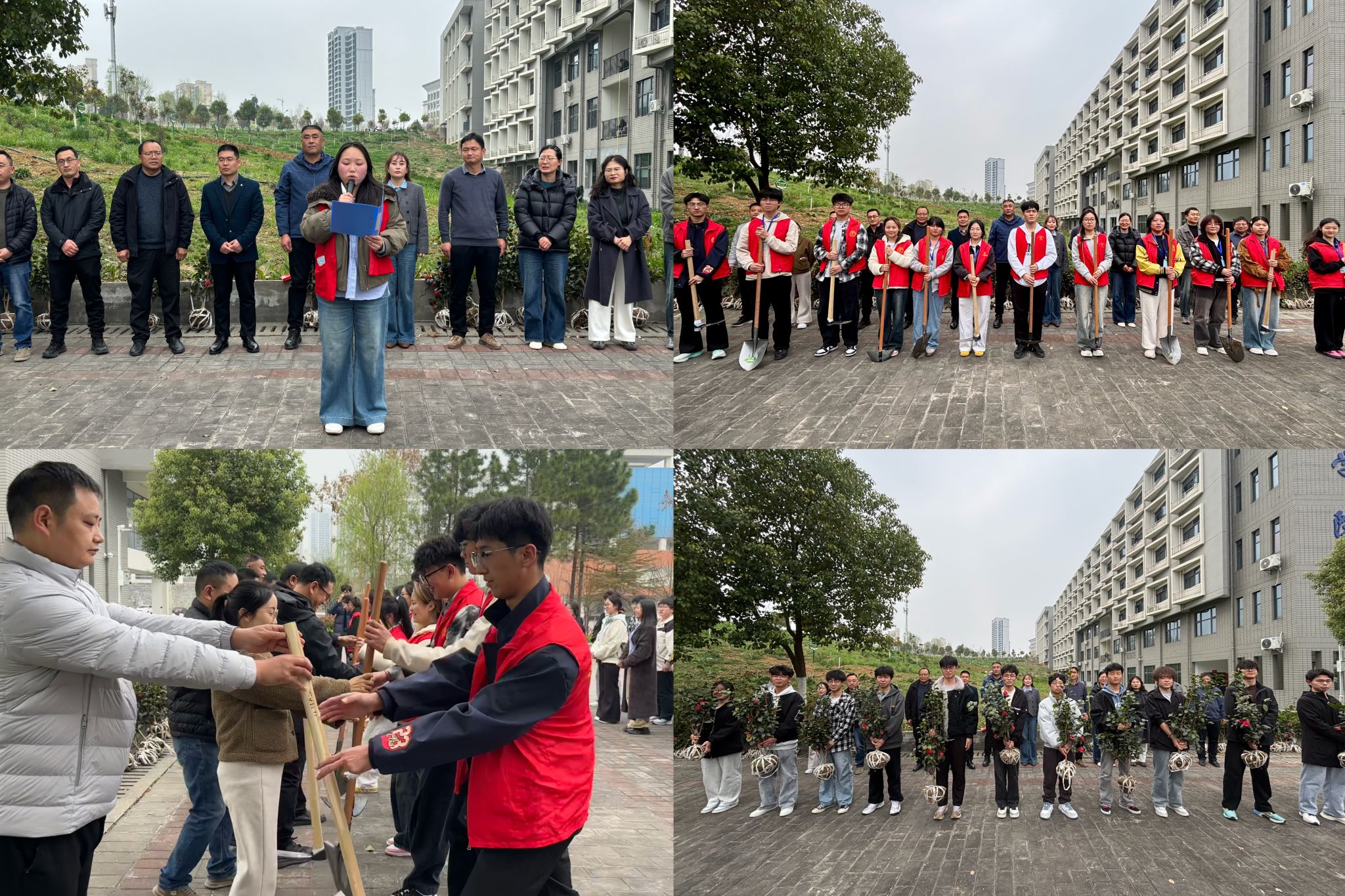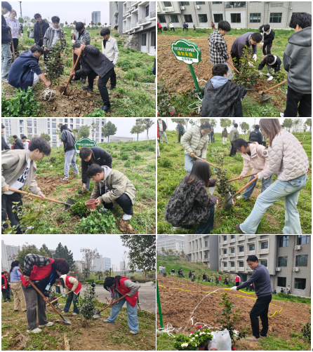 3月12日,太阳成集团tyc7111cc在江北校区开展“学雷锋践初心 植新绿润芳华”植树节劳动教育实践活动。学院领导、系主任、辅导员及60余名学生志愿者共同参与,活动由团总支书记成沛锐主持。