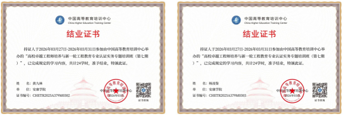 通过此次学习,两位教师对认证核心理念及持续改进机制有了更深入的理解,为学院专业内涵建设与人才培养优化提供了有益借鉴。我院将以此为契机,持续推动工程教育认证工作落地落实。